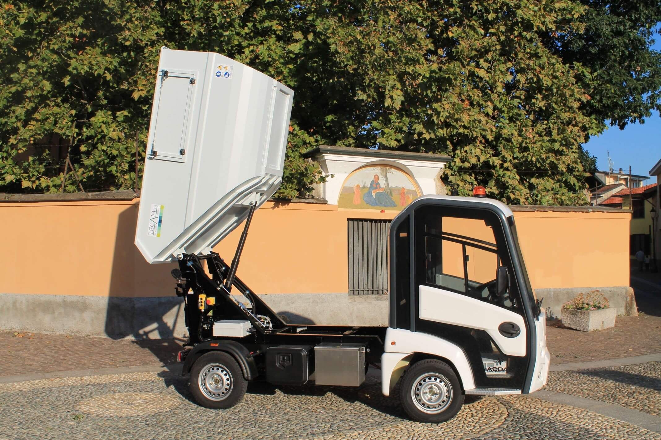 A completely electric vehicle, equipped with a tilting tank and bin turners, designed for “eco friendly” waste collection. Quiet, it does not pollute and is ideal for use in places where a discreet and reliable vehicle is required.
